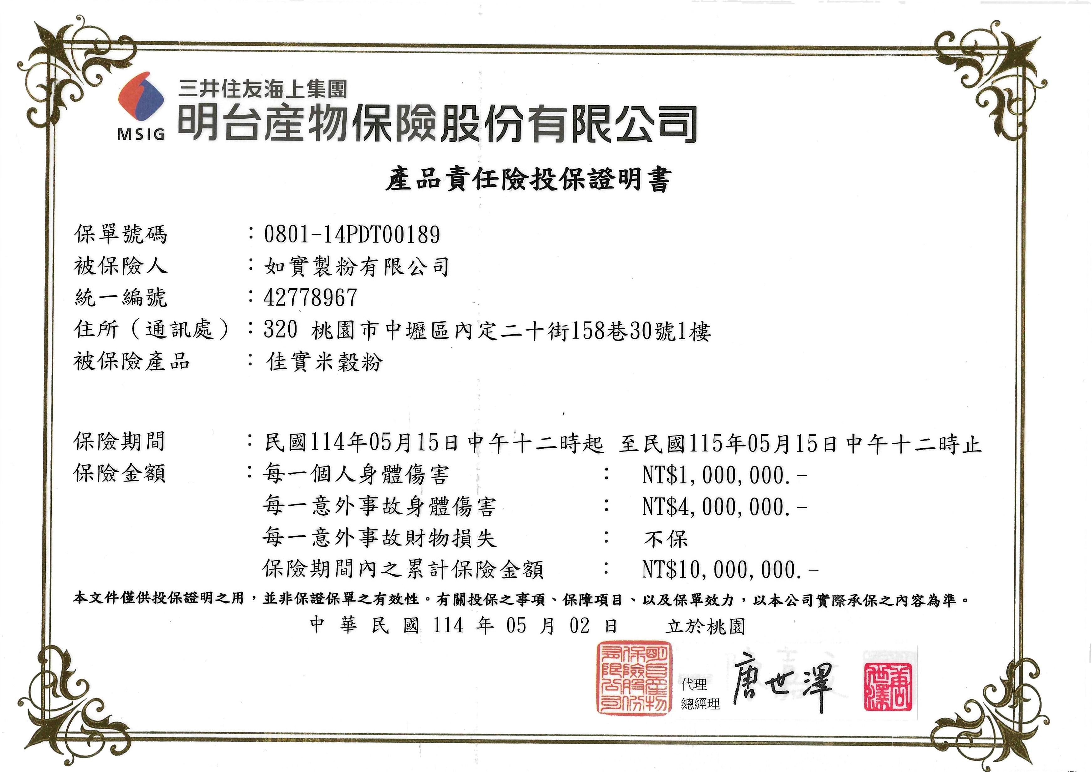 蓬萊糙米(桃園三號,台灣桃園)、無鋁泡打粉(磷酸二氫鈣、碳酸氫鈉、玉米粉,美國)