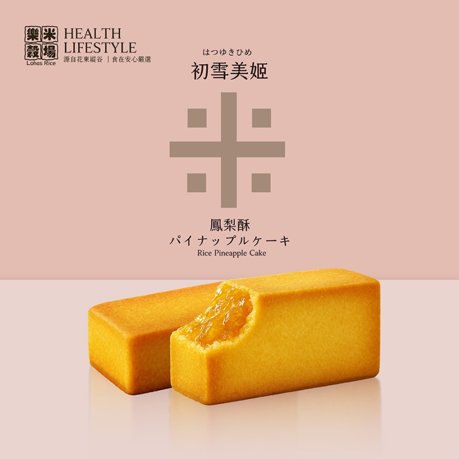 「初雪美姬」米鳳梨酥——極致細膩的米點心新風味。嚴選「初雪美姬」米榖粉,將稻米獨特的