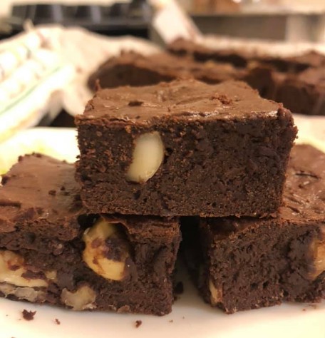 10.烤至九分熟,布朗尼表面發亮,竹籤上仍然沾有少許
