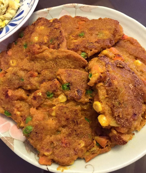 4. 鍋中放椰子油,用湯匙舀入米糊,小火煎成兩面金黃的餅即可。