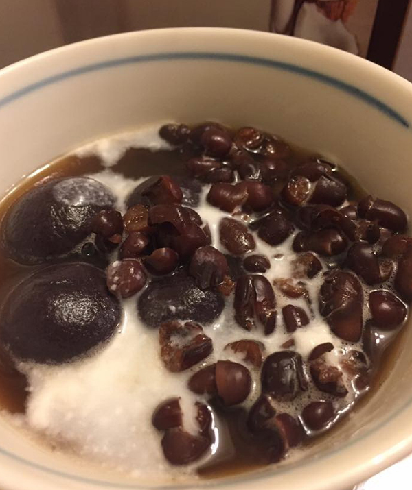 5. 碗裡加入紫米湯圓、紅豆湯,並淋上適量有機椰漿即可。