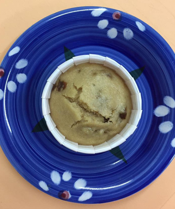 3. 輕輕拌入桂圓肉和碎核桃,裝入杯子蛋糕模型,每個約90g,再放十分鐘等米糊發酵。