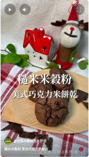 1. 糙米米穀粉200g2. 可可粉 15g3. 小蘇打粉 2.5g4. 鹽 2.5g5. 苦甜巧克力切塊 50g6. 融化的奶油70g7. 黑糖 120g8. 雞蛋 一顆